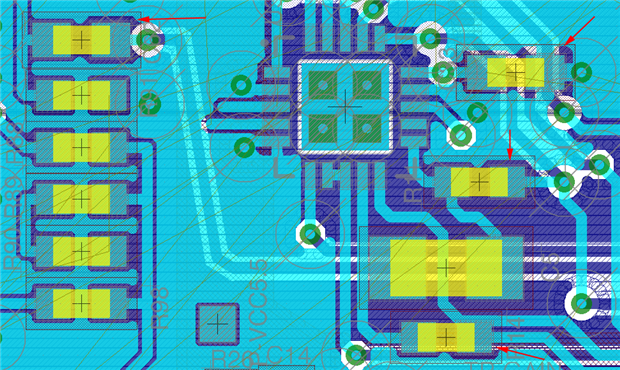 I'm trying to figure out why Eagle sometimes puts a larger space around one end of a passive versus the other. Referring to the attached partially completed layout, the red arrows show where one end of a resistor or capacitor has a larger space. All other R's & C's are fine. Any ideas why Eagle is doing this?