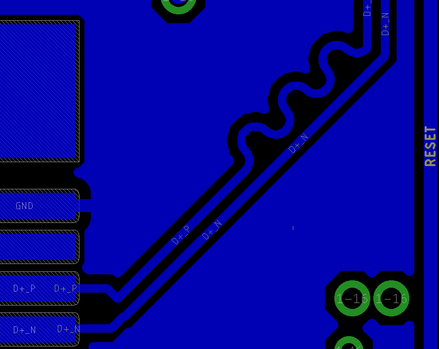 I did match the length of the diff pair (renaming them to D_P and D_N) match the length to 100% vs 100%).
