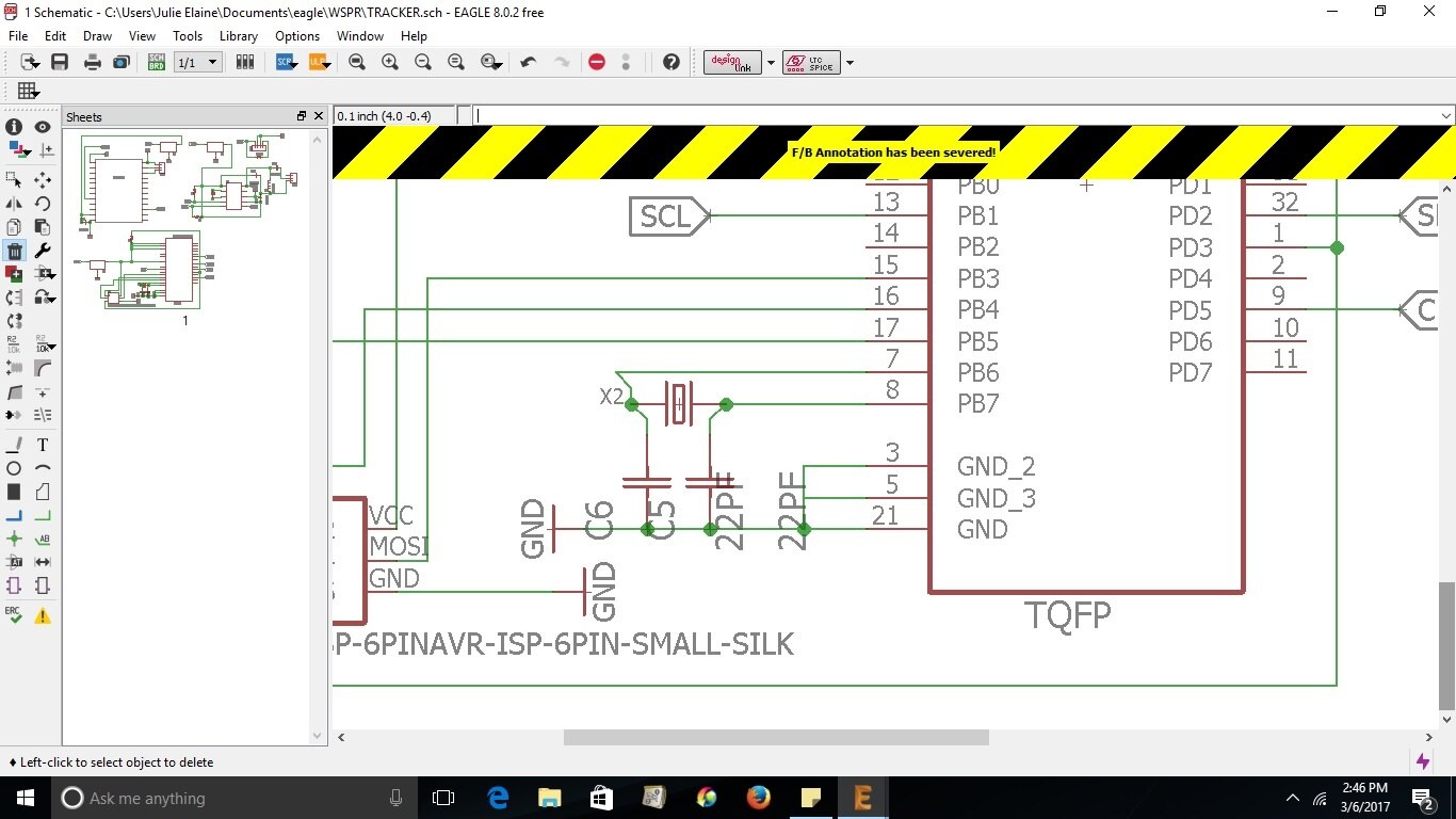 The last thing I expected was not finding common components in the library.My first mistake to assume that an Atmega328p-au would be one of the easiest to find.Not so and had to search the ends of the earth to find it and manually place it into the LIBR directory.After a 4 hour search and finally having this IC in my schematic layout I now see"shorts on several pins of this chip in the BRD window.The worse possible places no less on 3.3v and ground
