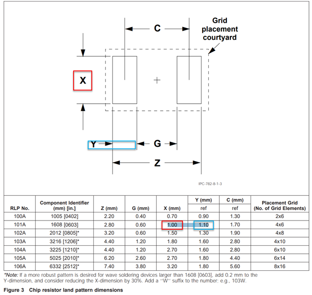 I'm working off of page 73 in the Surface Mount Design and Land Pattern Standard Chapter section 5.0 Land pattern dimensions.