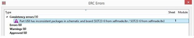 2. Tried to replace the "old" package in the board with the new one. Then I ran the ERC once again and got about 10 new consistency errors. I used the undo and now I am back with the first error shown in the picture.