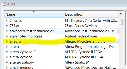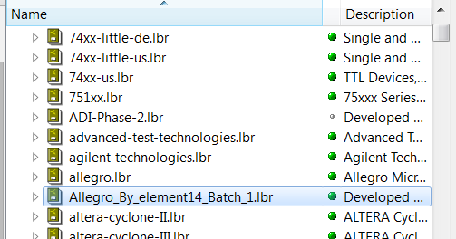 I have downloaded the library file that is Allegro_by_Element14_batch_1.lbr and added to the library. In the library window I right clicked on the library and checked use, that turns the green dot ON the library. Even after that when I open Add (symbol) window in the schematic for adding the part to my schematic. I still don't see the library in the ADD window but I can see it in the library. Do you know what I have to do make it visible in the ADD window.
