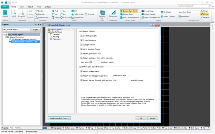 Right, after following Parts 1 & 2 of this blog series, you should have your design laid out and ready to print. However, no project proceeds without having any errors. In the previous parts, we compiled our design against the rules we set. But, are these fit for manufacturing? Let’s find out..