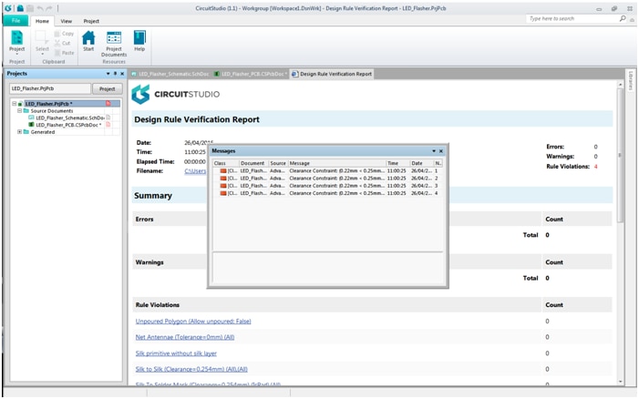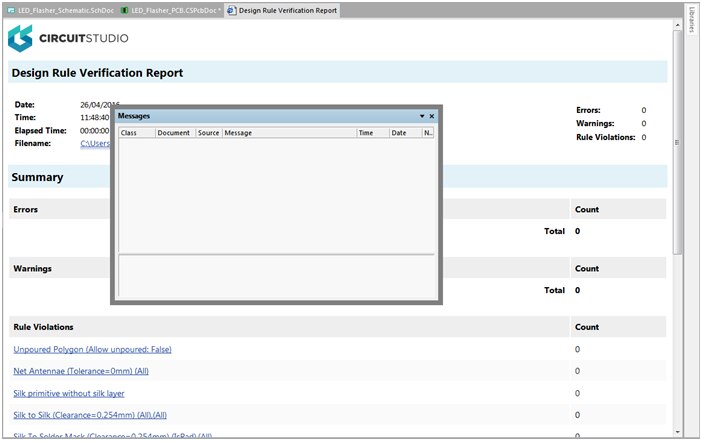 The Design Rule checker will validate your design against the rules set out and produce a report with all the violations. This is shown below: