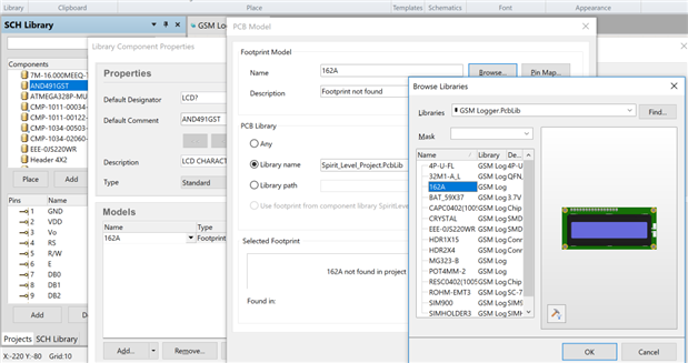 By going to the libraries tab while viewing my schematic document, I can see in the "Project" tab that the 2 libraries I created are there. Furthermore, I can select the schematic library I created and place the new schematic symbol down on my schematic... great! However, there is no footprint associated with it.
