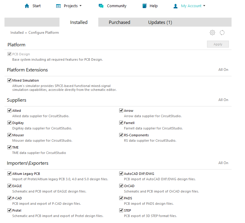 Is there a way of installing new importers into Circuit Studio? When I first installed it I made the mistake of thinking "I'll never need that importer" so disabled it. Now, of course, I need it.