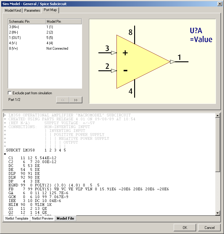 In my design i have a LM385(DR) (dual) opamp and want to simulate the circuit.