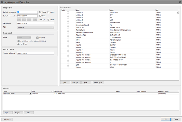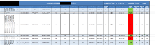 You can create a Excel Template File so you can create automatically with some klicks a complete BOM. But before you create the BOM you must create a Component Library. Every element in my library get some parameter like this: