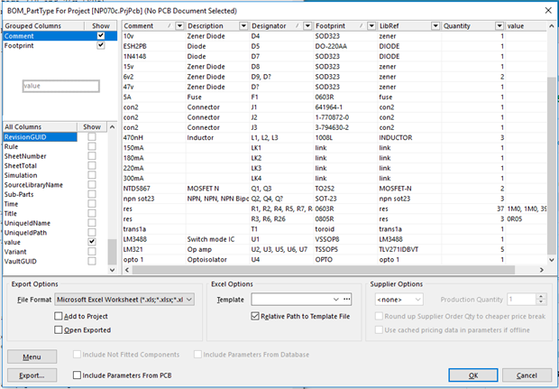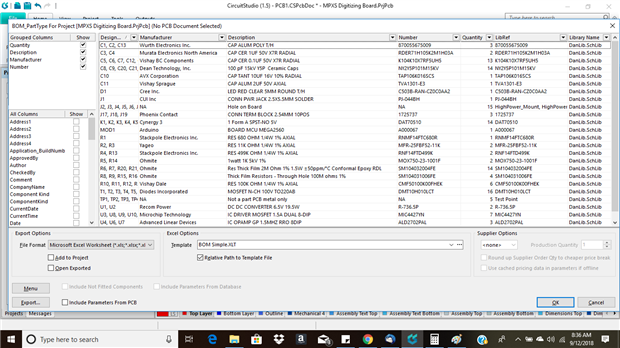 Every thing exports into the excel file but the part number of the part.   For some reason excel wont except it.  It is not importing the row and leaving an error message.   I can get the part number from library reference but I would like to know what am I doing wrong.