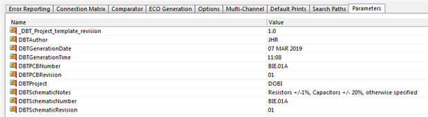 Project Parameters and synchronization with PCB
