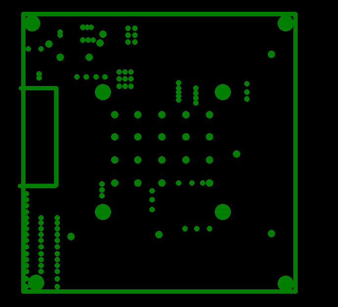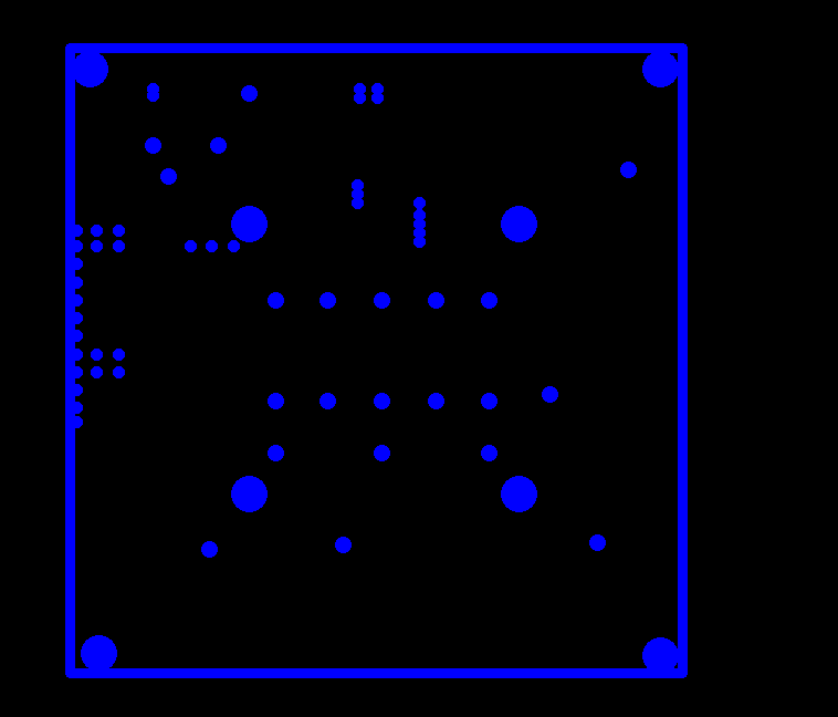 This looks like the GND vias in my design and it also shows a split GND plane. The VCC layer is as shown below -