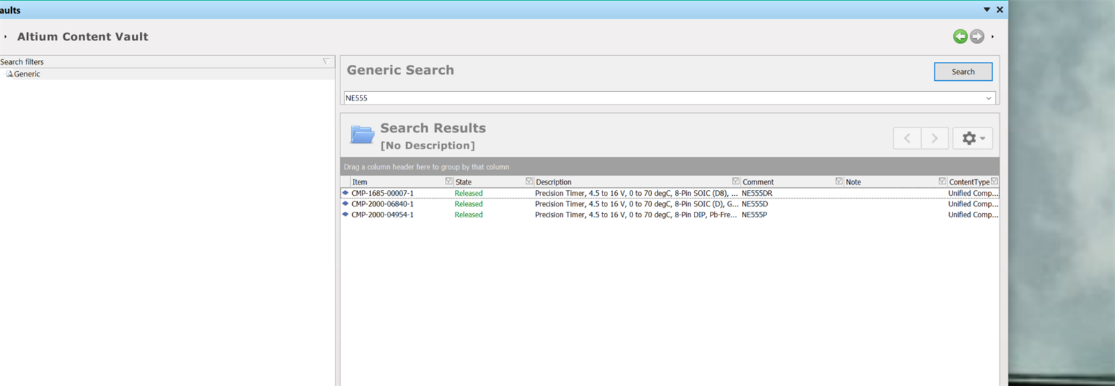 Man, that really helps a lot! Thank you for the info. The Structure tab still doesn't work, but now I can at least search for parts using the Search tab. You should post this and let everyone know. I'm sure they would appreciate it just as much as I did. As I mentioned in one of my replies, I am in touch with a Tech at Newerk/Element 14 and she is trying to get to the bottom of this search issue. I am still waiting to hear from her. Hopefully, Altium will get on the ball and we will hear some good news soon. As soon as I do I will post it. Thanks again for the information about the Search tab.