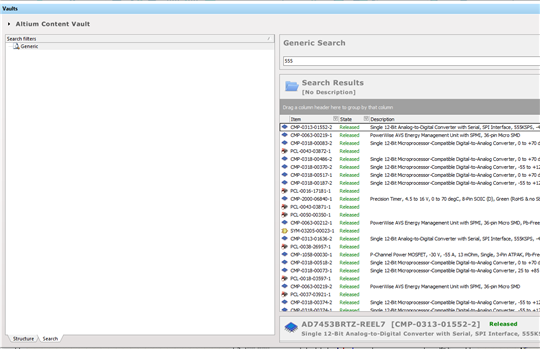 Ok, just to let everyone know who has been following this post. For some unknown reason the search tape in the Altium Vault is working for me again. Don't ask me how or why because I don't know - it just started working. So at least I can search for parts using the "Search-Tab" feature, for the time being. I'm not holding my breath. But still know luck searching for parts using the "Structure" Tab.