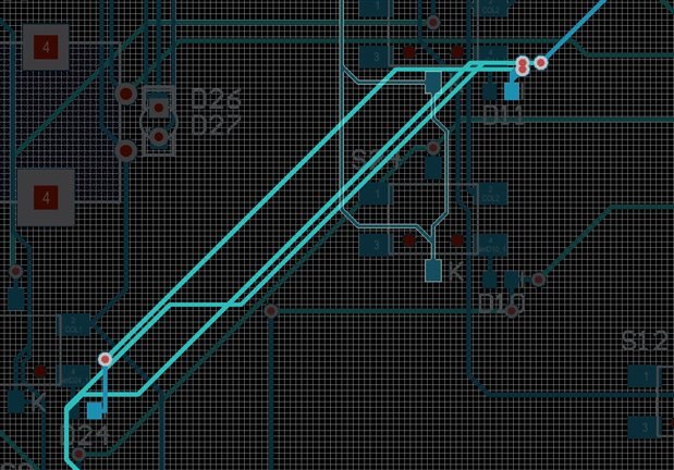 Pour la même net j'ai ce genre de pistes avec des via n'importe comment et des pistes de même net en //.