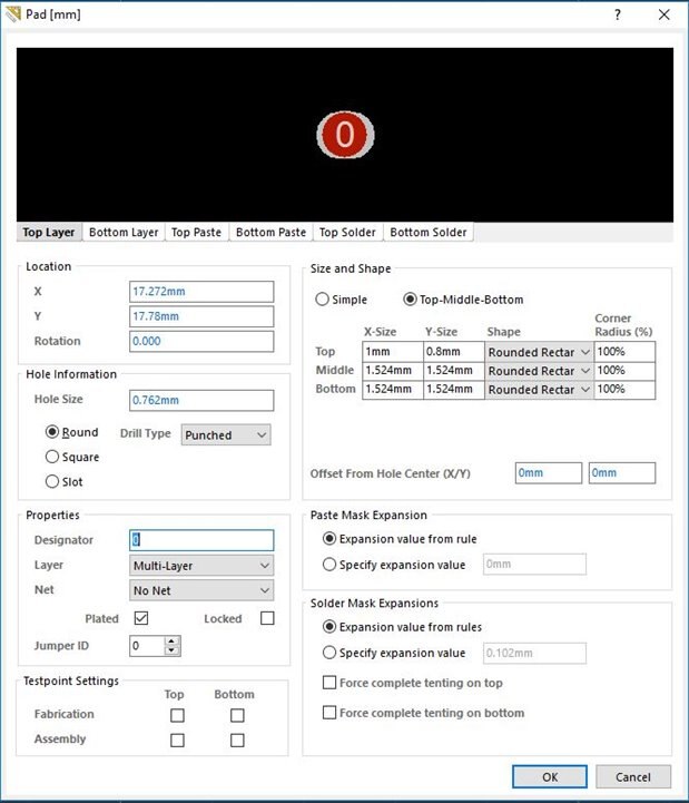 5. Click Ok, this pad should look like the following (this is a pad to act as a bottom footprint on a module.)
