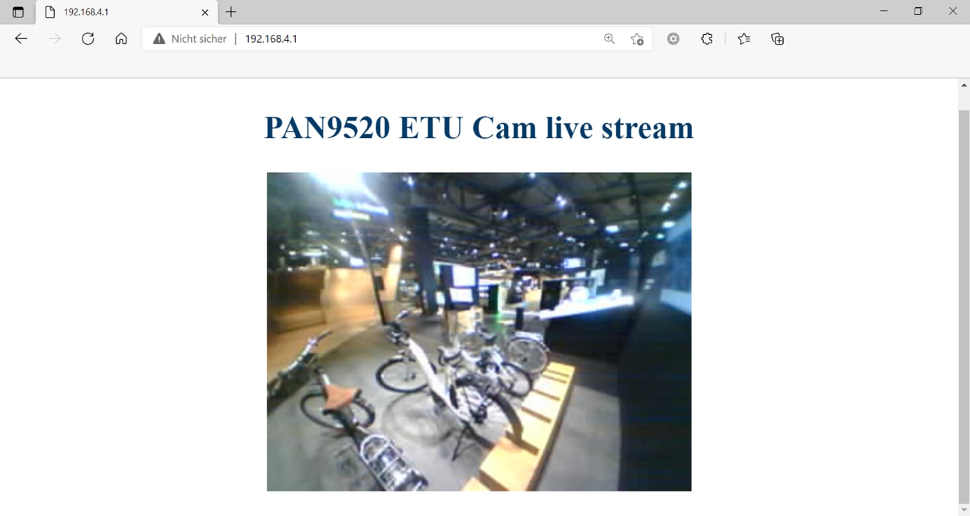 What you end up seeing in the browser is set in the index_handler (line 45-73). A simple static text "PAN9520 ETU Cam live stream" (line 60) alongside the continuous camera stream in a small box below the text (line 61) which is being delivered by the stream_handler (line 76-139). If you analyze the code more closely, it becomes clear that the image is loaded from the framebuffer (line95-100) continuously and sent in fragments so-called chunks (line 101-127). A calculation of the framerate is displayed in the logging (line 128-137).