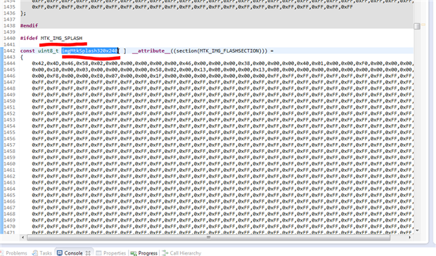 And when I check the declaration of ImgMtkSplash320x240 I am directed to the following c array hex file;