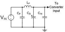 Even in the absence of an input inductor, the input leads have a parasitic inductance, and when switchers use purely MLC input capacitors with their very low ESR the potential for oscillation is very real. In this example there is a discrete inductor whose inductance and DCR are both known. With these quantities a damping capacitor CD can be selected to go in parallel with CIN, shown in Figure 8.