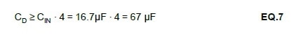 The factor of 4 in EQ.7 is also a guideline, and for size and cost purposes a 68 μF capacitor will work well.