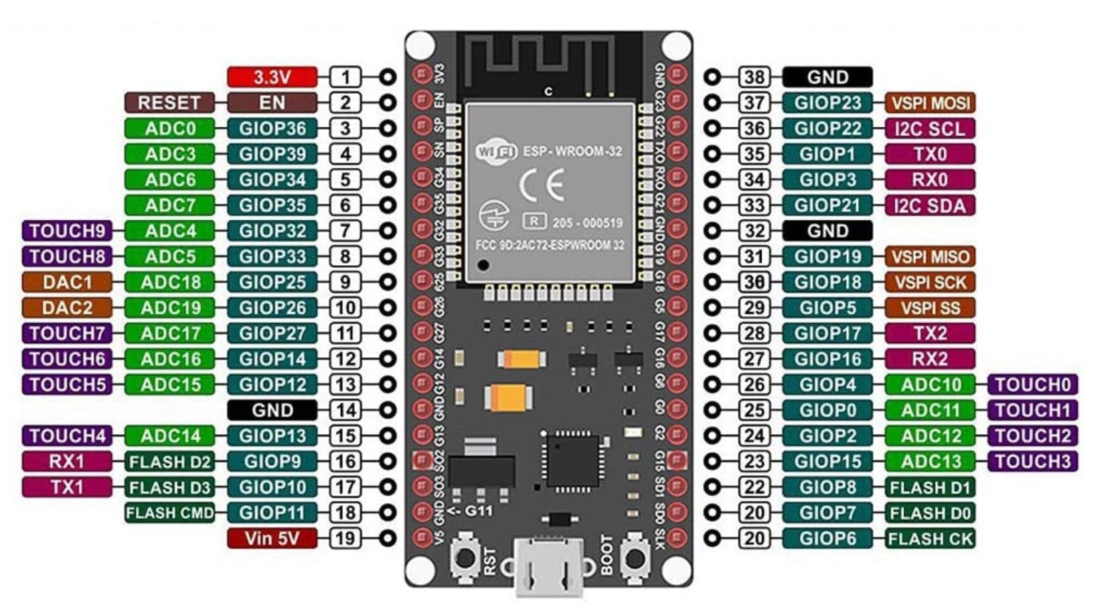 There are a lot of GPIO pins, but for a slight speed-up, just copy-paste the GPIO pin on the canvas, and then double-click each one to edit the pin number and GPIO name. Here’s what it will look like after a while: