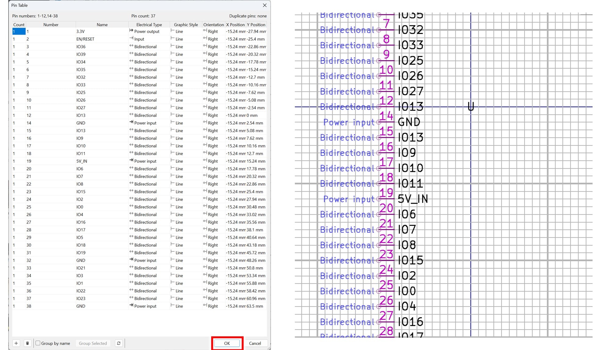 Using that Pin Table method, you’ll be done within five minutes even for a symbol with as many pins as this example has.