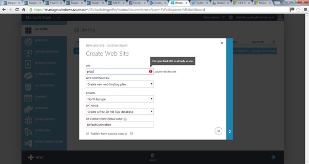 Stellen Sie sicher, dass der Name Ihrer Webseite richtig ist und nicht von anderen Benutzern verwendet wird – da es sich hierbei um einen Shared Hosting-Plan handelt, kann theoretisch jeder Nutzer, der den gleichen Namen wie Sie hat, in Azure auf Ihre Webseite zugreifen ...