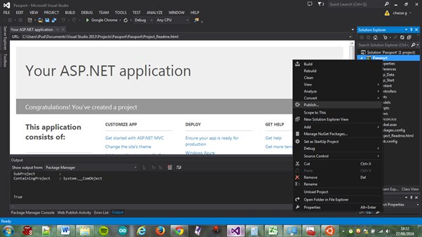 Machen Sie einen Rechtsklick auf das Projekt im Solution-Explorer und wählen Sie „Publish“: