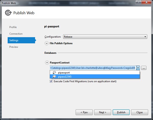 Klicken Sie jetzt auf „Windows Azure Websites“ – hier finden Sie Ihr Webseitenprofil in einer Dropdown-Liste.