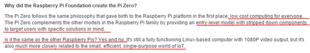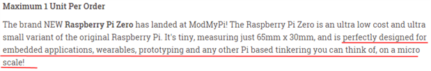 The resellers go a bit further. This is what ModMyPi advertise the 'Zero for. And they must be experts on it, since they are the ones facing the customers parting with the money: