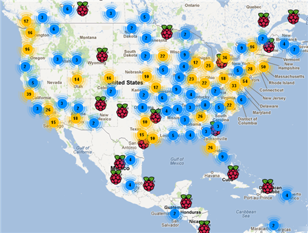 The map so far has got 66 Pis (From the time of this post) and is constantly growing!