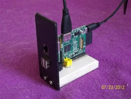 Here's the external view of Ethernet and USB connectors, with HDMI on top.  The RCA jack makes a dandy mounting plug:
