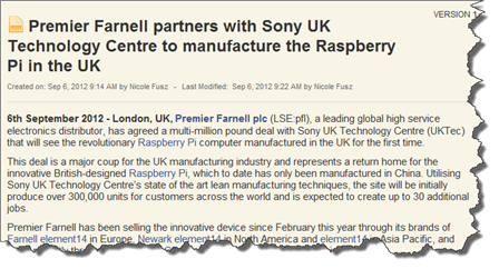 What do you think of the latest annoucement that Premier Farnell is working with Sony UK Technology Centre to builld Raspberry Pi in the UK? Full press release.