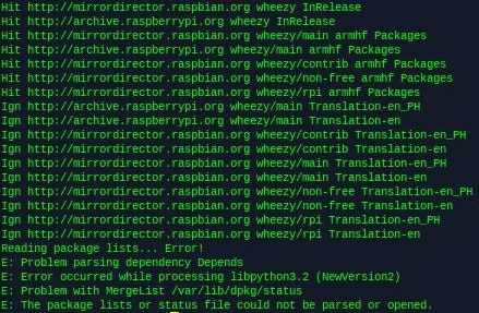 Hello everybody! After successfully updating my SDHC card containing Arch Linux ARM, I decided to update my Raspbian SDHC card. Shockingly, I got the error as shown above. The command I used, was: