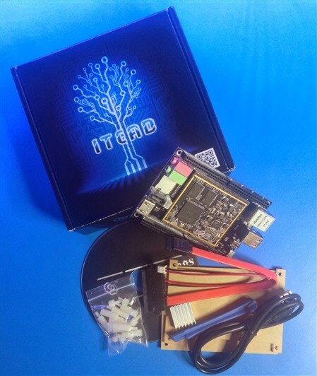 It arrived with the USB cable, SATA cable, laser cut acrylic protective "case" with standoffs, a heatsink for the A10, a *** tool to remove the core board, all in a very nice box.