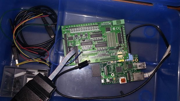 Gertboard. As the USBtinyISP has a level-shifter my thought is to power the target chip from the RPI