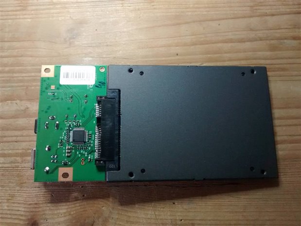 The two following images shows the front and back of the SSD connected to the board (not yet powered!!!)