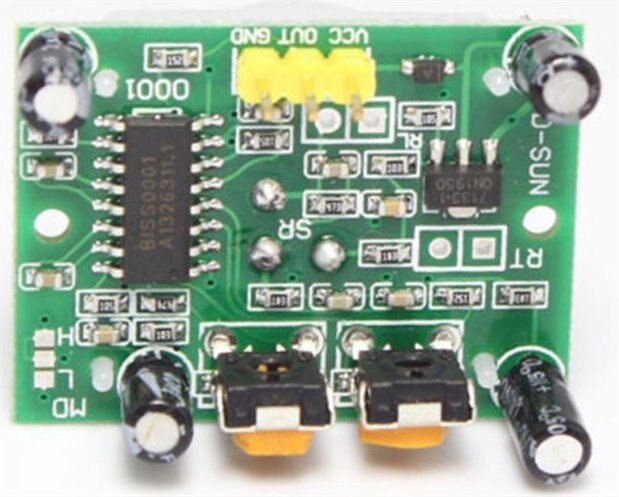 On mine the pins aren't labelled, but I assume they are standard as in https://howtomechatronics.com/wp-content/uploads/2015/09/PIR-Sensor-Pinout.jpg?x57244