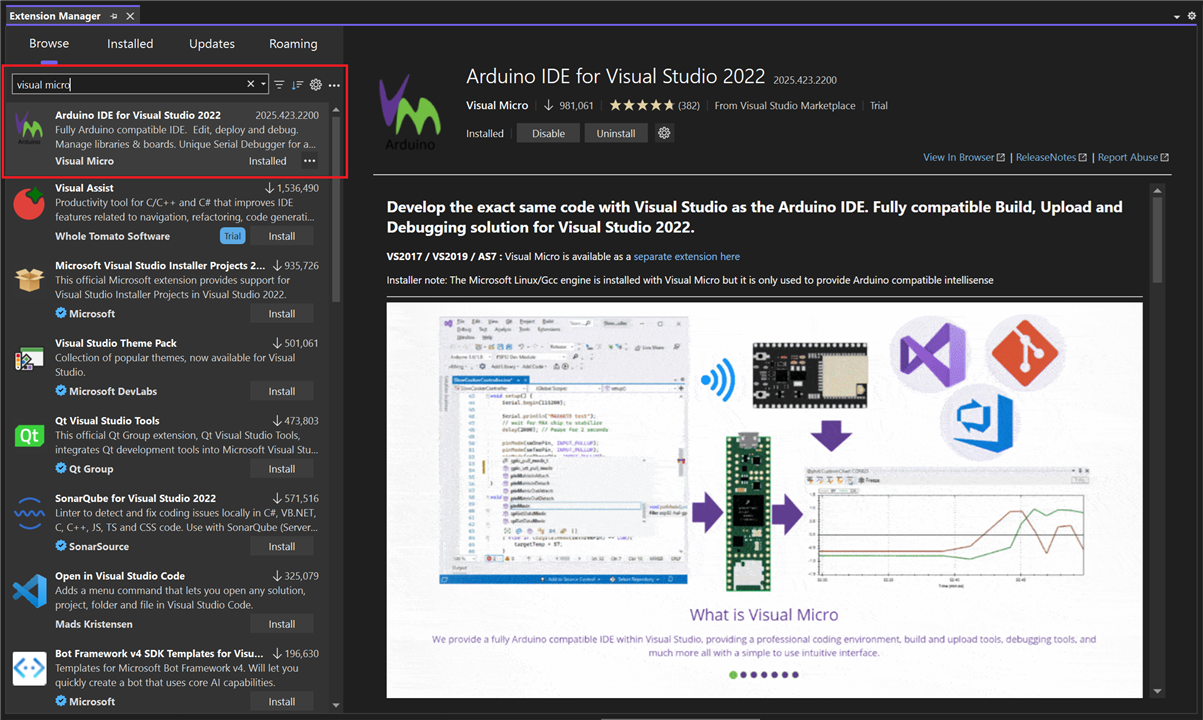 Visual Micro Extension (download using MSVS "Extension Manager")