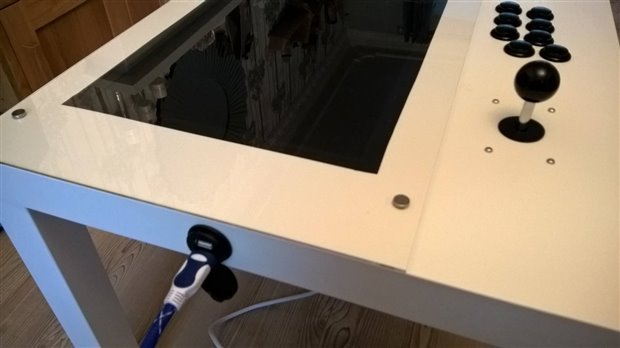 If you decide to put an acrylic or polycarbonate sheet on top to protect the monitor, remember to put it in place before you insert the buttons, as they'll need to pass through the sheet.