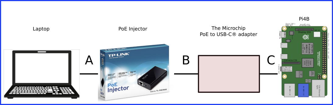 The drawing shows my preferred setup for the RoadTest, a Linux laptop interfacing through a PoE Injector communicating with a Raspberry Pi4B. The injector is a device I acquired to resolve an issue I discovered during the RoadTest Review The Road to Raspberry Pi4B/ PoE Hat RoadTest Review (PoE insight needed) . I want to avoid more purchases.
