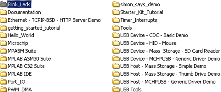The install also created the folder C:\Microchip Starter Kits\PIC32 Starter Kits with the following folders :