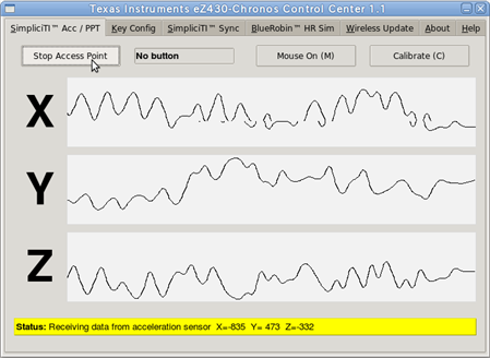 The software bundled with the watch includes the “eZ430-Chronos Control Centre”, which demonstrates various features of the watch by interfacing through the RF dongle. Connecting to the watch is instant, and hassle-free. You are then able to take readings from the on-board accelerometer, set time, calibrate sensors, send generated heart-rate and speed data to the watch, and even update the firmware. You can even use the accelerometer to move the mouse pointer, and define buttons on the watch as computer keys. The video, controlling the mouse, speaks for itself(which I'll add soon, promise) – geek heaven.