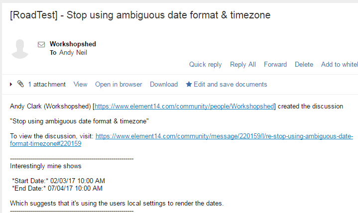 This is a classic problem with forums being viewed all across the world, and having contributions from all across the world!