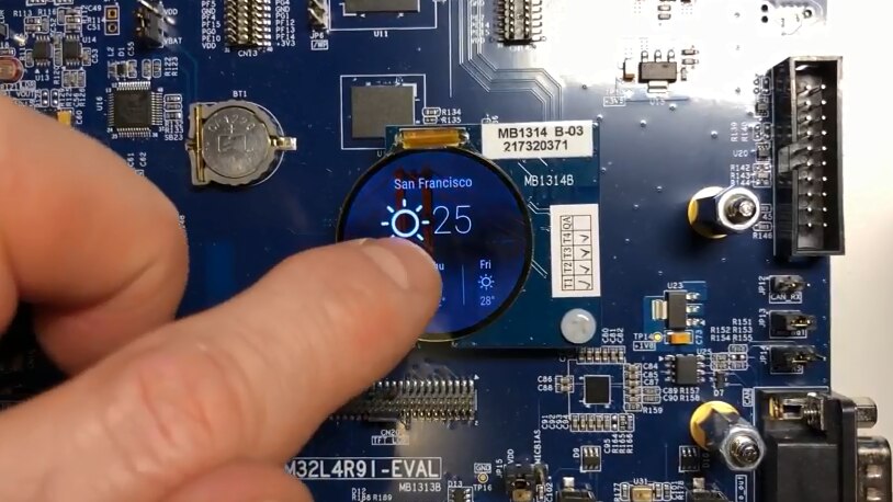 I've actually had it on my desk for a week or so before that. Whenever I had a moment, I couldn't help examining its tiny display, which is a daughterboard for the main STM 32 board. I was curious about the display. I read up on it an. It features the TouchGFX framework for creating innovative embedded GUIs with high-end graphics and smooth animations on microcontrollers.features. Here's a few pics: