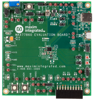 It has an evaluation kit called the MAX77860EVKIT. The MAX77860 evaluation system (EV system) is a fully assembled and tested surface-mount printed circuit board (PCB) that evaluates the single input switched-mode battery charger and other features. For More Info About the EV KitFor More Info About the EV Kit