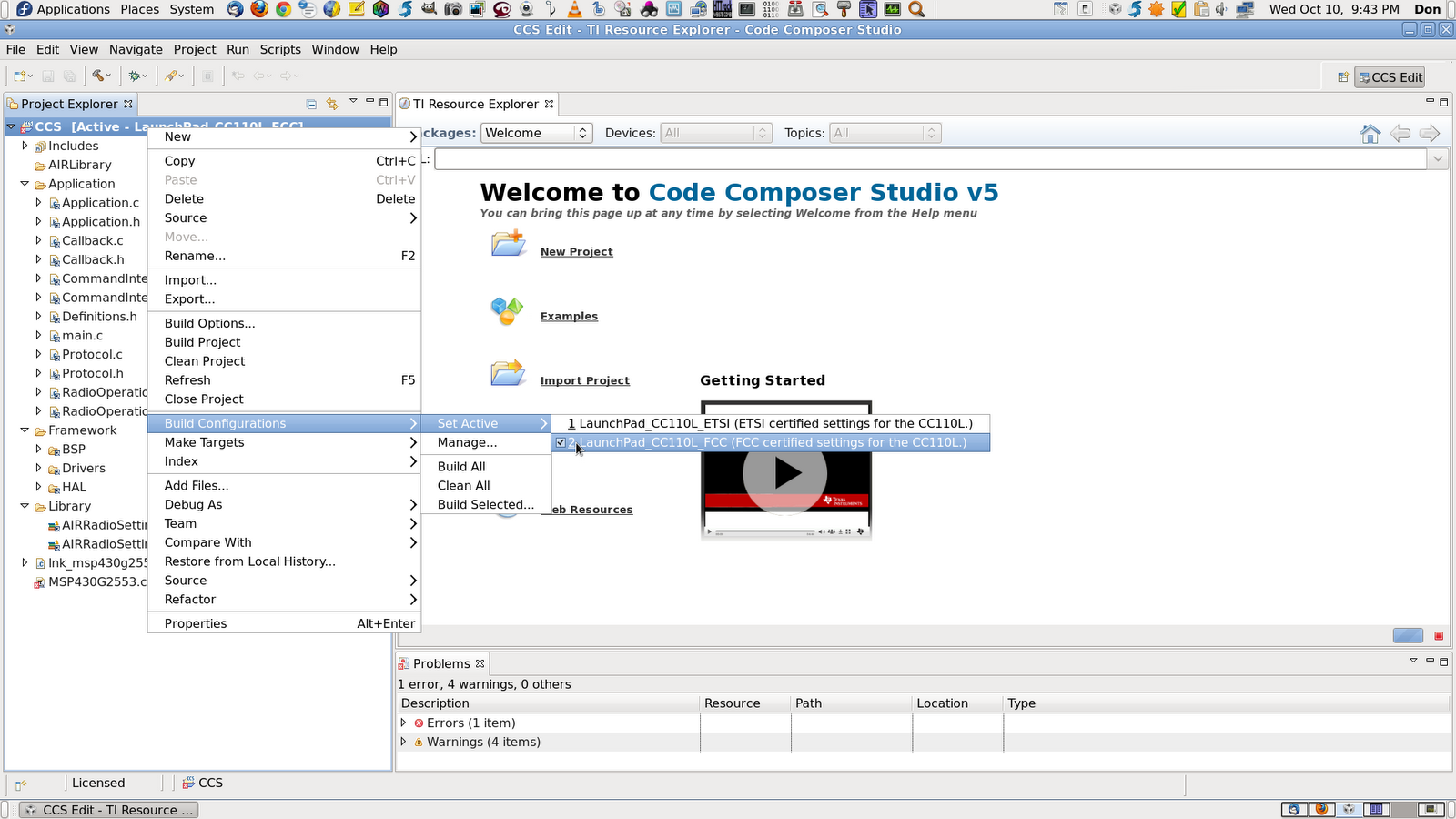 I installed Code Composer Studio V5 on Windows 7 but couldn't figure out how to get the Anaren firmware code make a proper project. I contacted air@anaren.com and they sent me a link to video on drop…