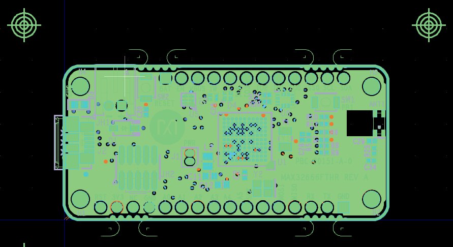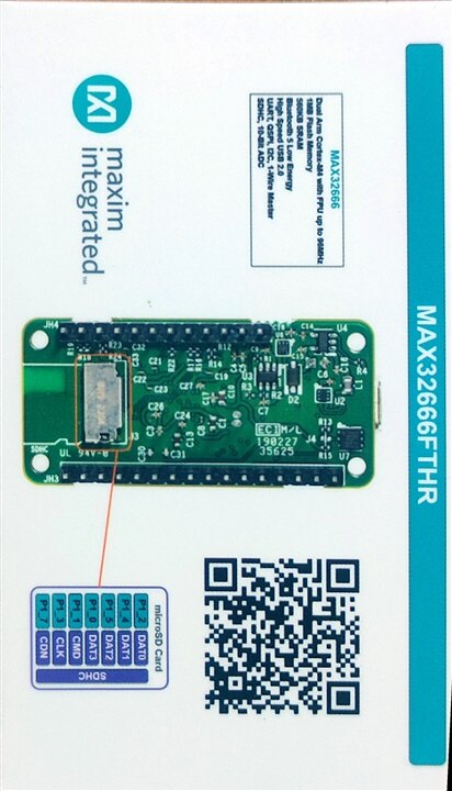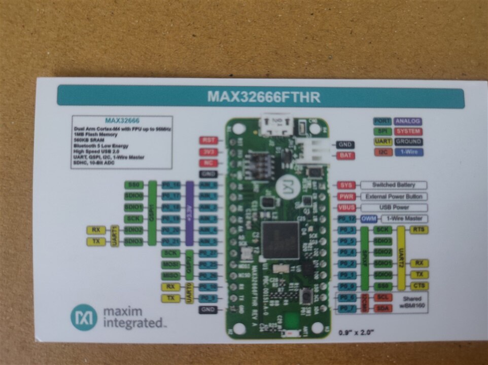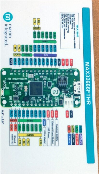 1. MAX32666FTHR Board (this is evaluation board) with pin-outs description in small visiting card size