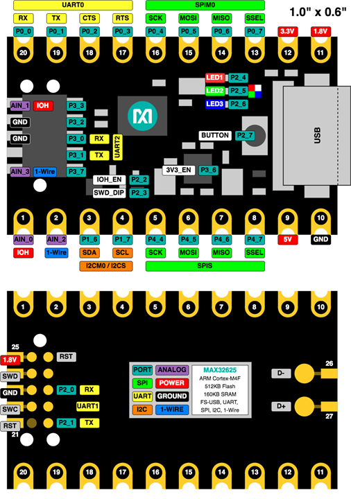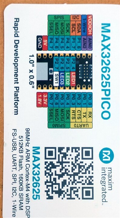2. MAX32625PICO (this is a debugger) with pin-outs description in small visiting card size