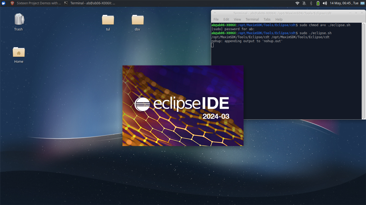 5) Now connect the USB cable from MAX32666FTHR to Ubuntu.It shows blue light blinking but the USB do not gets detected !