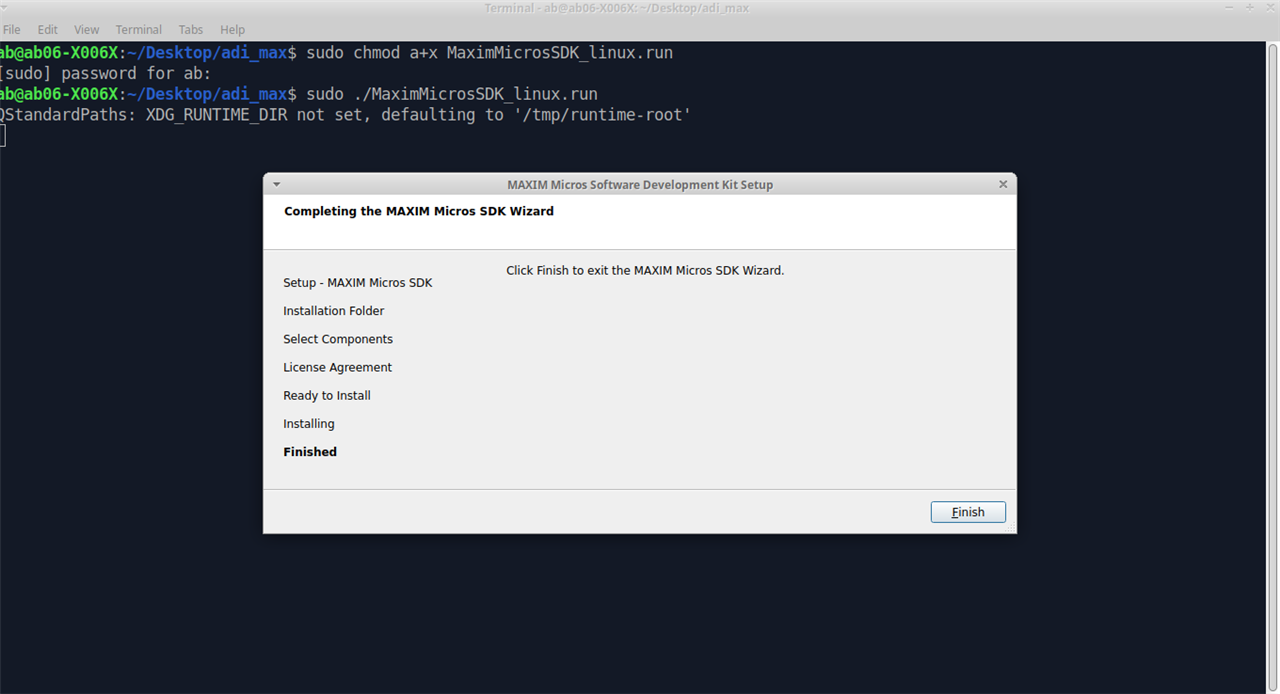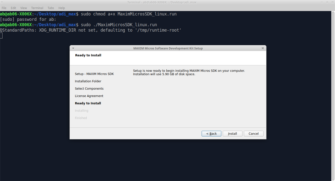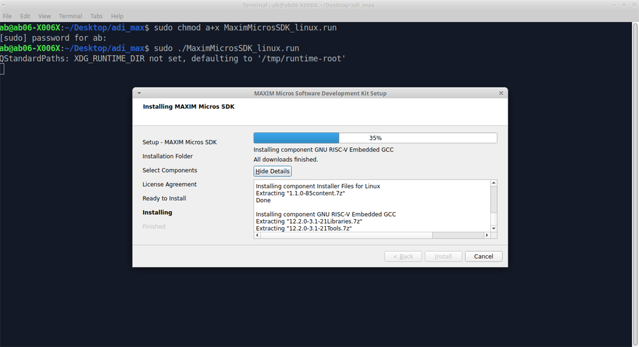 6) Now connect the ribbon IDC cable from MAX32666FTHR to MAX32625PICO and the USB cable from MAX32625PICO to Ubuntu.